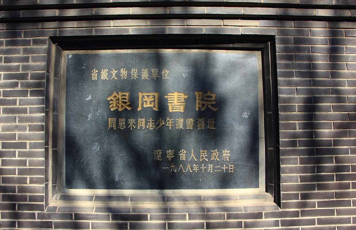 銀岡書院,是東北地區(qū)保存下來的古代書院,是清代著名的五大書院之一,是關(guān)東第一書院,在東北教育史上具有舉足輕重的地位。它"開本邑教育之先",培養(yǎng)出大批英才。我們敬愛的周恩來總理就是在銀岡書院入讀小學(xué)。銀岡書院現(xiàn)在是遼寧省重點(diǎn)文物保護(hù)單位,其中的周恩來少年讀書舊址紀(jì)念館,被列為遼寧省愛國(guó)主義教育基地。